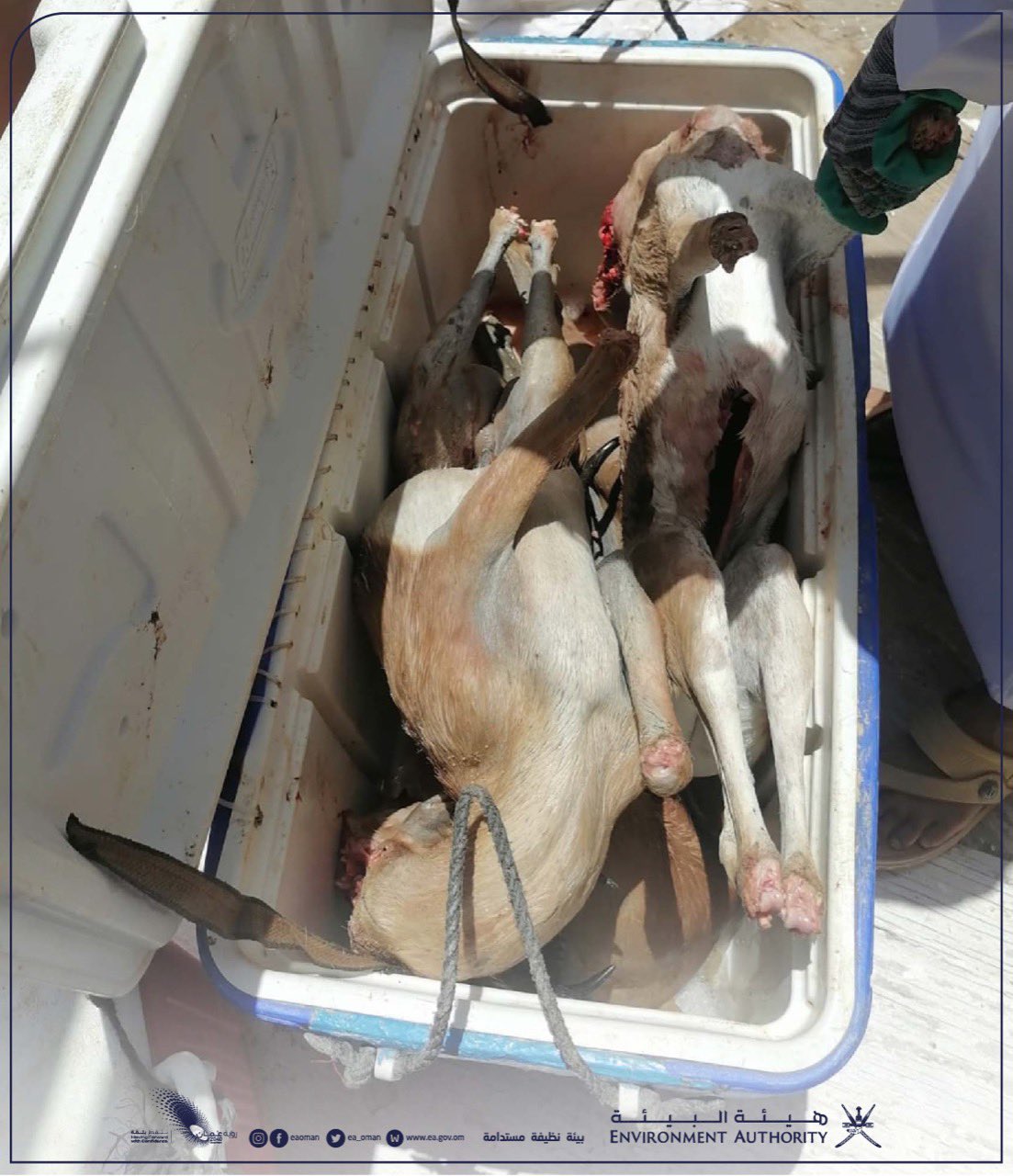 ألقت وحدة الرقابة البيئية بولاية شليم وجزر الحلانيات وبالتعاون مع شرطة عمان السلطانية وعدد من الجهات ذات الاختصاص، القبض على ثلاثة مواطنين بحوزتهم عدد من الغزلان البرية المذبوحة، وجاري استكمال الإجراءات القانونية بحقهم.