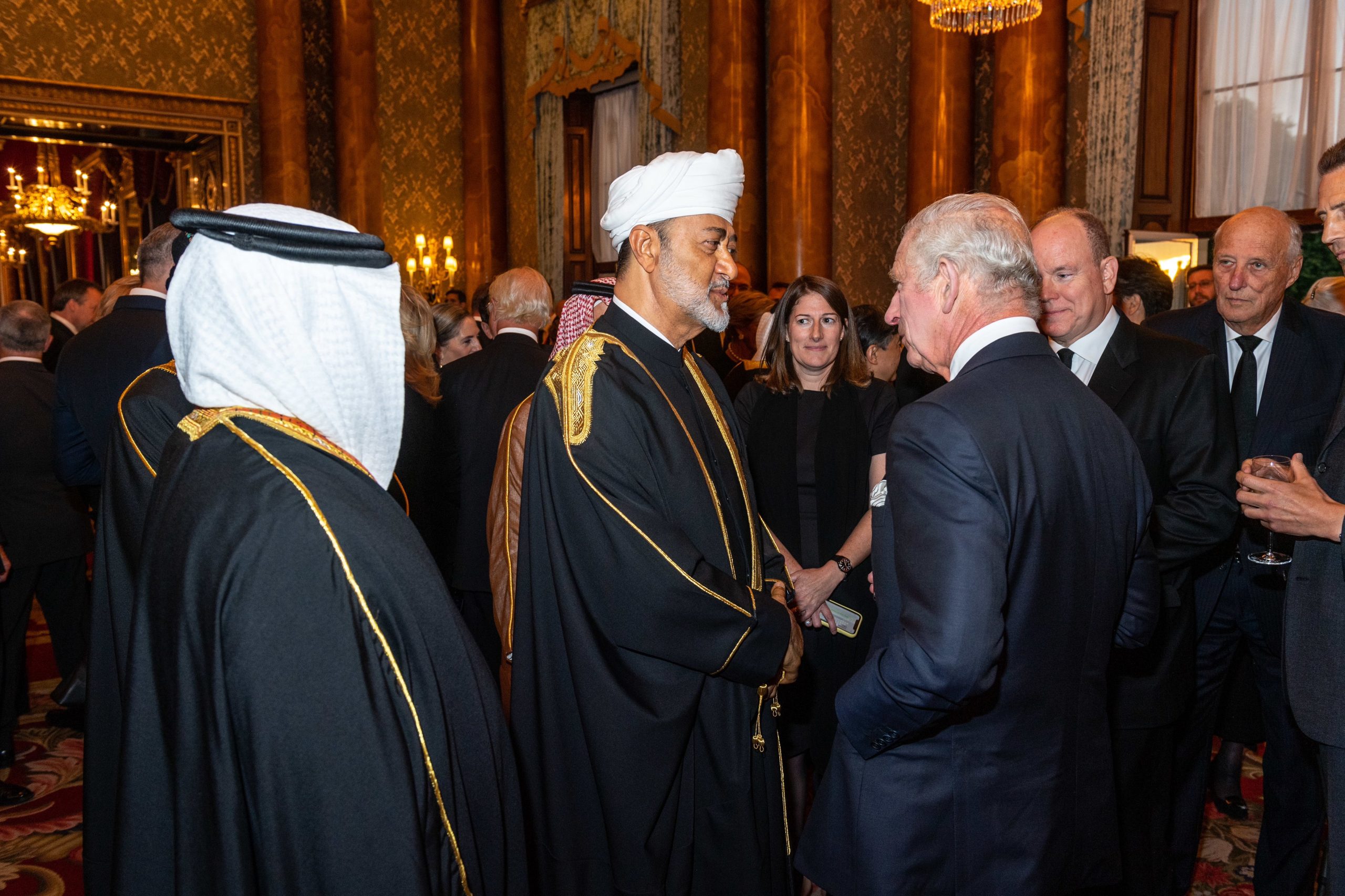 قام حضرة صاحب الجلالة السُّلطـان هيثم بن طارق المعظم – حفظه الله ورعاه – بتقديم التعازي والمواساة إلى جلالة الملك تشارلز الثالث ملك المملكة المتحدة لبريطانيا العظمى وإيرلندا الشمالية ورئيس الكومنولث وإلى الملكة القرينة كاميلا وأعضاء الأسرة المالكة البريطانية في وفاة الملكة إليزابيث الثانية، وذلك خلال استقبالهم لجلالة السلطان المعظم بقصر باكنغهام بالعاصمة البريطانية لندن مساء اليوم.