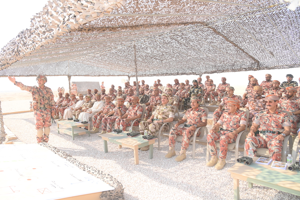 ونفذ الضباط المرشحون خلال التمرين، فعاليات البيان العملي بالذخيرة الحية وفق خطة التمرين الموضوعة بمشاركة أسلحة الإسناد بالجيش السُّلطاني العُماني وبدعم جوي من طائرات سلاح الجو السُّلطاني العُماني وإسناد من الخدمات الهندسية بوزارة الدفاع.