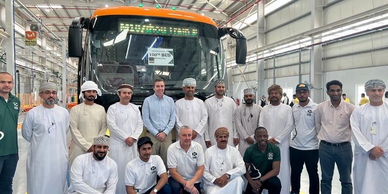 احتلفت شركة كروة موترز في مصنعها بالمنطقة الاقتصادية الخاصة بالدقم اليوم بالانتهاء من إنتاج الحافلة رقم 100، الذي يعد أحد أبرز أهداف عمليات الإنتاج للعام الحالي 2022 م.