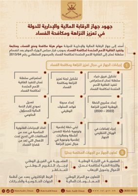 وهج الخليج - مسقط تم تكليف هيئة الرقابة المالية والإدارية للدولة بمهمة هيئة مكافحة الفساد ، وتنفيذ اتفاقية الأمم المتحدة لمكافحة الفساد بموجب مرسوم سلطاني رقم64/2013.