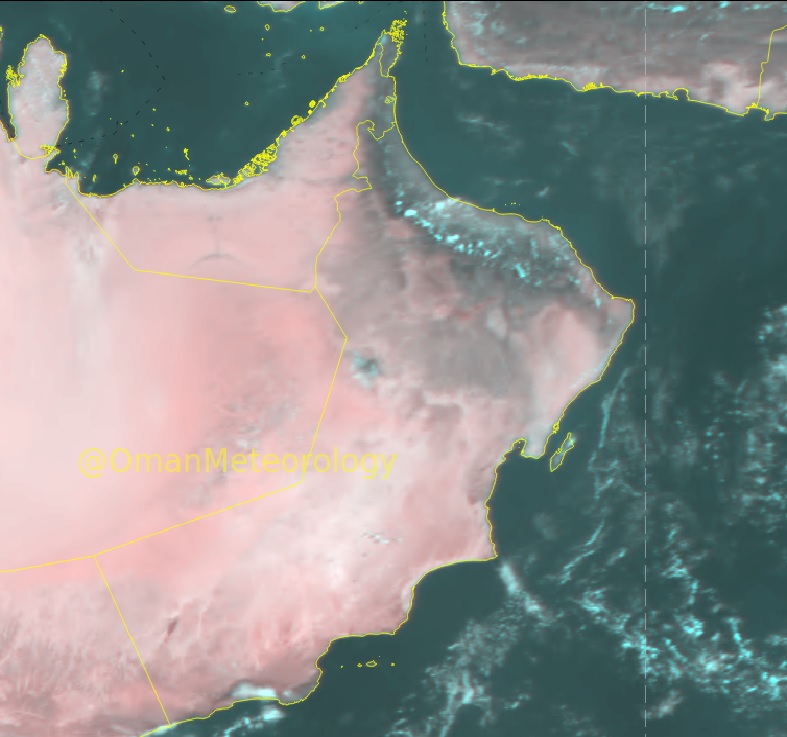 توسع السحب الركامية ونشاطها على جبال الحجر وهطول أمطار متفاوتة الغزارة على أجزاء من المناطق الجبلية من محافظات شمال الشرقية والبريمي والداخلية وتحرك السحب بإتجاه المناطق الصحراوية.