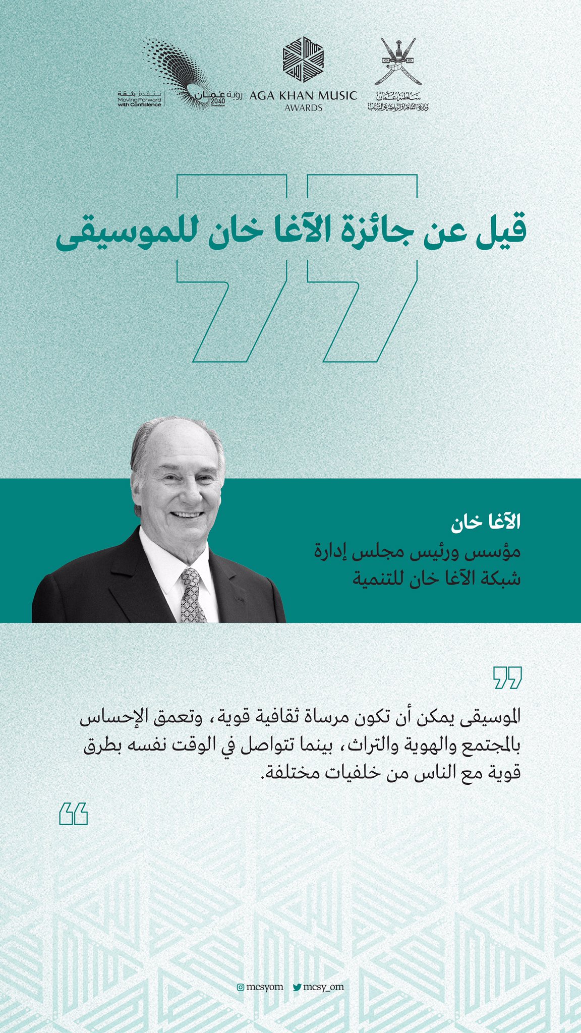 تعود جائزة الآغا خان للموسيقى بدورتها الثانية لتكرّم المواهب الموسيقية المتميزة وتحتفي بها، لتحفظ وتنشر بذلك التراث الموسيقي في مُختلف المجتمعات الإسلامية حول العالم.
