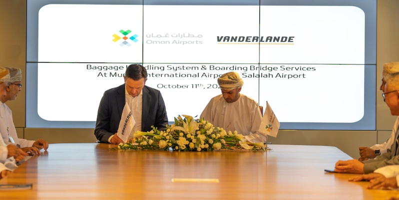 وقعت شركة “مطارات عُمان” اليوم اتفاقية مع شركة “فاندر لاند للصناعات بي في” تختص بخدمات تشغيل وصيانة أنظمة مناولة الأمتعة وأنظمة جسور صعود الطائرات بمطاري مسقط الدولي وصلالة لمدة 6 سنوات.
