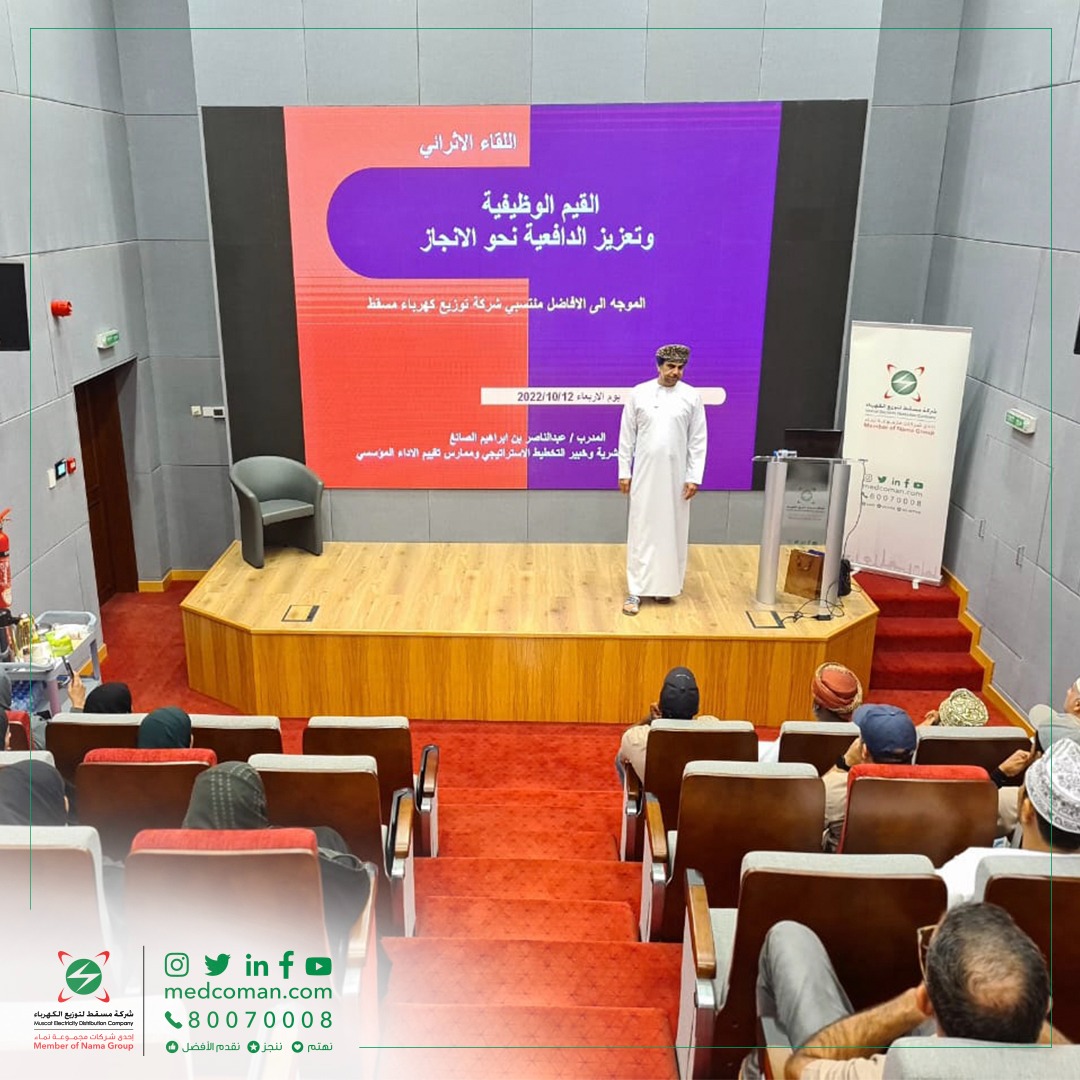 «القيم الوظيفية وتعزيز الدافعية نحو الإنجاز» فعالية من تنظيم شركة مسقط لتوزيع الكهرباء