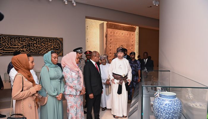 واطلع دولة الدكتور حسين علي مويني رئيس زنجبار على عددٍ من المقتنيات التي تمثل أبعادًا تاريخية من العلاقات العُمانية بأفريقيا في قاعة عُمان والعالم، كما وقف على ركن السلطان قابوس بن سعيد بن تيمور /أعزّ الرجال وأنقاهم/ بقاعة عصر النهضة، واطلع على أصل الرسالة رقم (1) للسلطان قابوس بن سعيد بن تيمور – طيب الله ثراه – الموجهة إلى أصحاب السمو أعضاء مجلس العائلة المالكة الكرام عبر مجلس الدفاع، وعلى عددٍ من المقتنيات السلطانية.