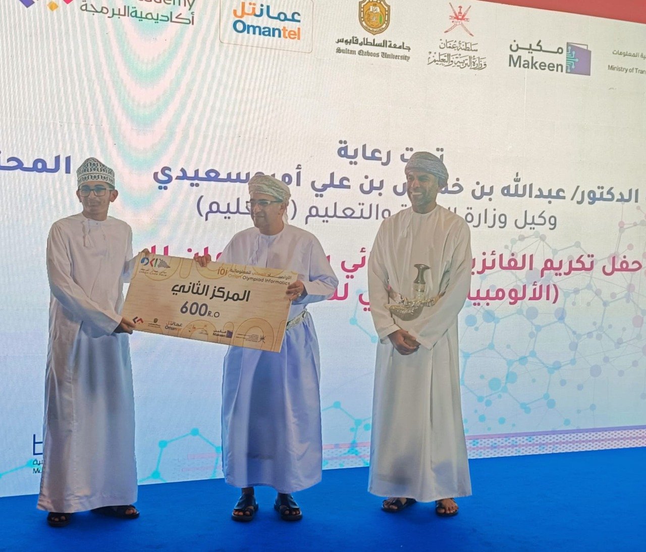احتلفت وزارة النقل والاتصالات وتقنية المعلومات اليوم السبت في مركز عمان للمعارض والمؤتمرات بختام “الأولمبياد العماني للمعلوماتية” عن سباق عمان للبرمجة والذي تنظمه الوزارة في مهرجان عمان للعلوم بالتعاون مع وزارة التربية والتعليم، وجامعة السلطان قابوس والشركة العمانية للاتصالات (عمانتل)، وأكاديمية البرمجة.
