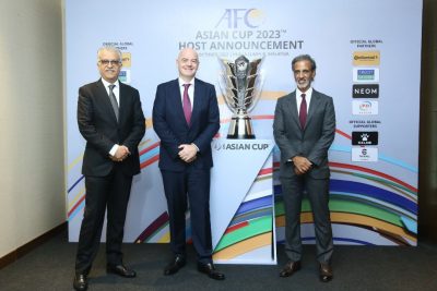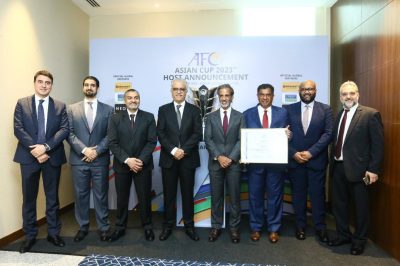 وهج_الخليج-وكالات تسلم سعادة الشيخ حمد بن خليفة بن أحمد آل ثاني رئيس الاتحاد القطري لكرة القدم من سعادة الشيخ سلمان بن إبراهيم آل خليفة رئيس الاتحاد الآسيوي شهادة تنظيم دولة قطر لبطولة كأس آسيا 2023.