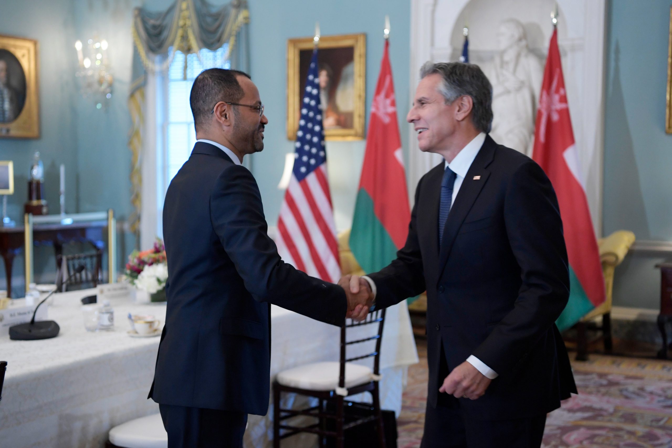عقد معالي السيد بدر بن حمد بن حمود البوسعيدي وزير الخارجية ومعالي انتوني بلينكن وزير خارجية الولايات المتحدة جلسة مباحثات رسمية في العاصمة الأمريكية واشنطن، تم خلالها الإعلان عن بدء أعمال الحوار الاستراتيجي بين سلطنة عمان والولايات المتحدة، وتناول العديد من الملفات المتعلقة بالتعاون الثنائي والقضايا الإقليمية والدولية ذات الاهتمام المشترك والتي تضمنها البيان المشترك التالي بين البلدين الصديقين.