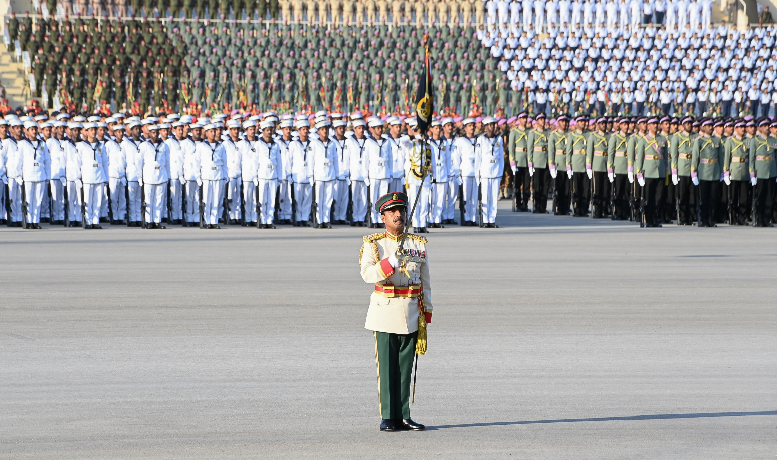وردّد طابور العرض النشيد العسكري (فلتسلمي عُمان)، كما ردّد طابور العرض نداء الولاء والتأييد “الإيمان بالله، الولاء للسُّلطان، الذود عن الوطن”، والهتاف ثلاثا بحيـاة حضرةِ صاحبِ الجلالةِ السُّلطان هيثم بن طارق المعظم القائد الأعلــــى/حفظه الله ورعاه/.