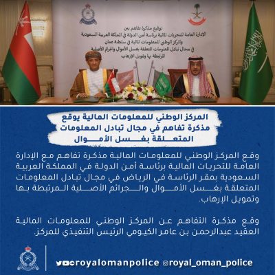 وتم توقيع مذكرة التفاهم عن طريق المركز الوطني للمعلومات المالية