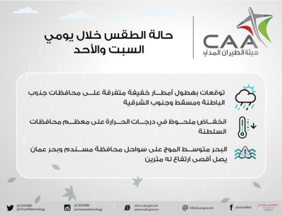 حالة الطقس خلال يومي السبت والأحد