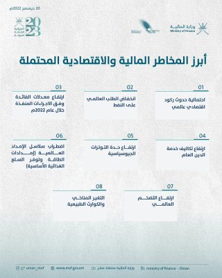 أعلنت وزارة الداخلية عن أبرز المخاطر المالية والاقتصادية المحتملة لميزانية سلطنة عُمان 2023 :