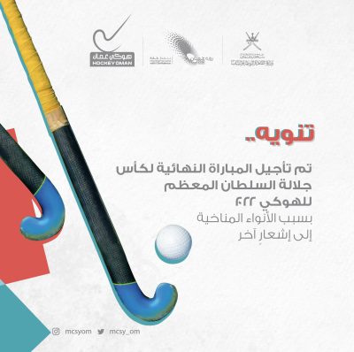 نوهت وزارة الثقافة والرياضة والشباب على صفحتها الرسمية على موقع التواصل الإجتماعي تويتر ،ت بتأجيل المباراة النهائية لكأس جلالة السلطان للهوكي ،بسبب الأجواء المناخية إلى إشعار آخر.