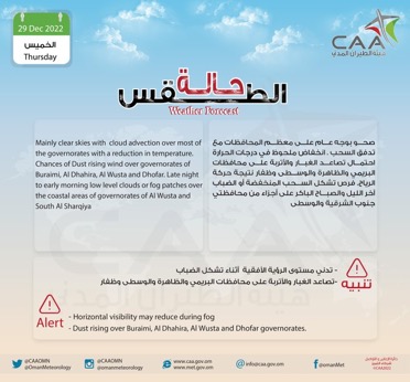 الرئيسية/أخبار محلية/حالة الطقس لهذا اليوم أخبار محلية حالة الطقس لهذا اليوم29/12/2022. 29/12/2022وهج الخليج – مسقطShare on:WhatsApp29/12/2022. 29/12/2022 فيسبوك X لينكدإن Tumblr بينتيريست Reddit VKontakte مشاركة عبر البريد طباعة