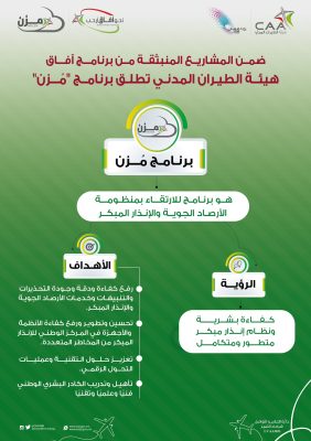 وهج الخليج - مسقط أطلقت هيئة الطيران المدني برنامج "مزن" والذي يندرج ضمن مشاريع برنامج آفاق ، ارتقاءً بمنظومة الأرصاد الجوية والإنذار المبكر.