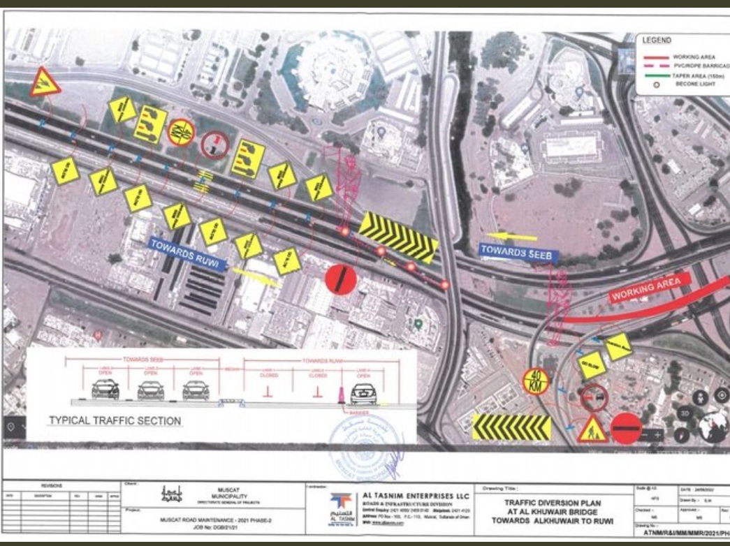 ستنفذ بلدية مسقط بالتعاون مع الادارة العامة للمرور ، إغلاقًا كليًا لجسر الخوير (شارع السلطان قابوس- باتجاه القرم) يوميًا من الساعة 10 مساء إلى 6 صباحًا، وذلك ابتداءً من مساء اليوم وحتى يوم الخميس الموافق 19 يناير 2023 ؛ بغرض استبدال فواصل تمدد الجسر.