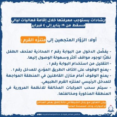 الشرطة تطلق إرشادات يستوجب معرفتها خلال إقامة فعاليات ليالي مسقط 2023