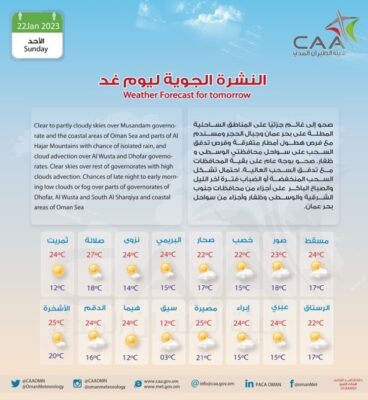الرئيسية/أخبار محلية/الطقس.. صحو إلى غائم جزئيًا في بعض المناطق الساحلية أخبار محلية الطقس.. صحو إلى غائم جزئيًا في بعض المناطق الساحلية22/01/2023. 22/01/2023وهج الخليج – مسقطShare on:WhatsApp22/01/2023. 22/01/2023 فيسبوك X لينكدإن Tumblr بينتيريست Reddit VKontakte مشاركة عبر البريد طباعة