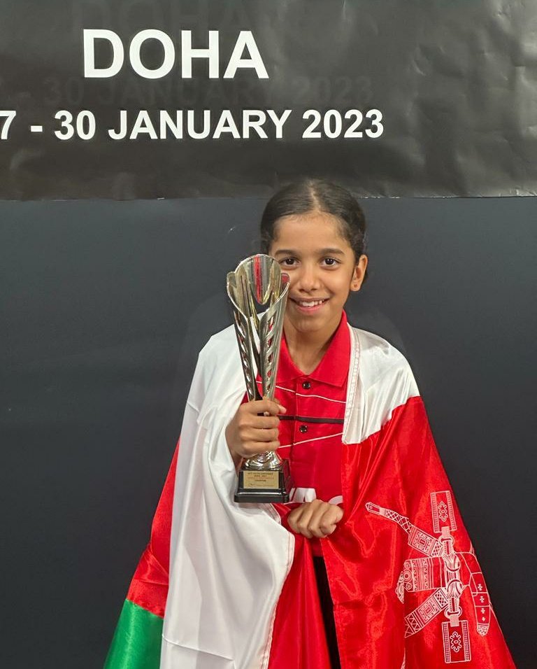 فازت تالية بنت منير الرواحية لاعبة مُنتخبنا الوطني للفتيات لكرة الطاولة بالميدالية الذهبية في منافسات بطولة قطر الدولية للشباب لكرة الطاولة تحت 11 سنة.