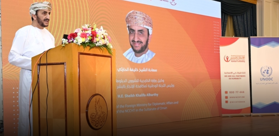 وقال سعادة الشيخ خليفة بن علي الحارثي وكيل وزارة الخارجية للشؤون الدبلوماسية ورئيس اللجنة الوطنية لمكافحة الاتجار بالبشر راعي المناسبة في كلمة له إن سلطنة عُمان أولت اهتمامًا بالغًا بمكافحة كل الممارسات المرتبطة بجريمة الاتجار بالبشر التي لا تتوافق مع الشرائع السماوية والمبادئ والقيم الإنسانية السامية، لما في ذلك من إهانة لحقوق الإنسان المشروعة وكرامته المُصانة.