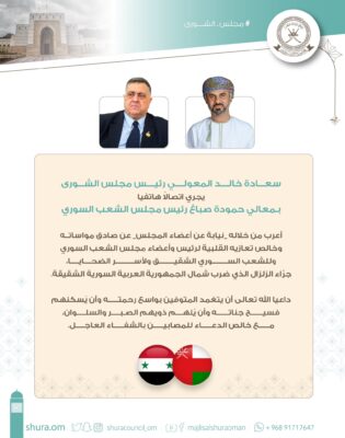 رئيس مجلس الشورى يعزي نظيره السوري والتركي في ضحايا الزلزال المدمر