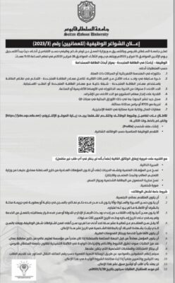 اعلنت جامعة السلطان قابوس عن توفر شاغر وظيفي لديها كما هو موضح أدناه :