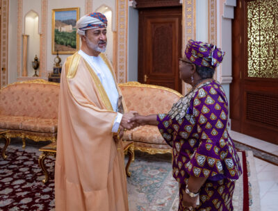 استقبل حضرةُ صاحبِ الجلالةِ السُّلطان هيثم بن طارق المعظم /حفظه الله ورعاه/ بقصر البركة العامر صباح اليوم معالي الدكتورة نجوزي اكونجو ايويلا المديرة العامة لمنظمة التجارة العالمية.