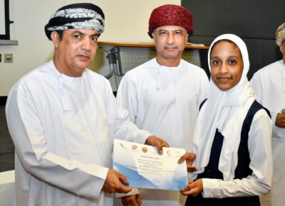 وفاز بالمركز الثاني في مسابقة أفضل فيلم توعوي قصير حول فرط الكوليسترول العائلي الطالبة زينب بنت حمد البداعية من مدرسة حيل العوامر للتعليم الأساسي(9-12) بمحافظة مسقط.