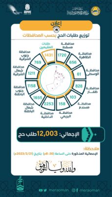 أعلنت وزارة الأوقاف والشؤون الدينية عبر صفحتها الرسمية على موقع التواصل الاجتماعي تويتر ،عن توزيع طلبات الحج بحسب المحافظات منذ بداية التسجيل حتى الساعة ٠٨:٣٠ بتاريخ اليوم ٢١/٢/٢٠٢٣، كما هو موضح بالجدول التالي :