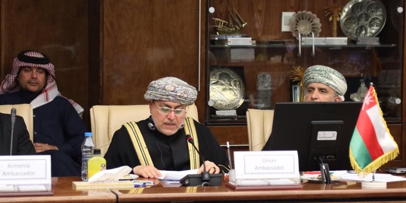 وترأس وفد سلطنة عُمان سعادة إبراهيم بن أحمد المعيني سفير سلطنة عُمان المعتمد لدى الجمهورية الإسلامية الإيرانية.