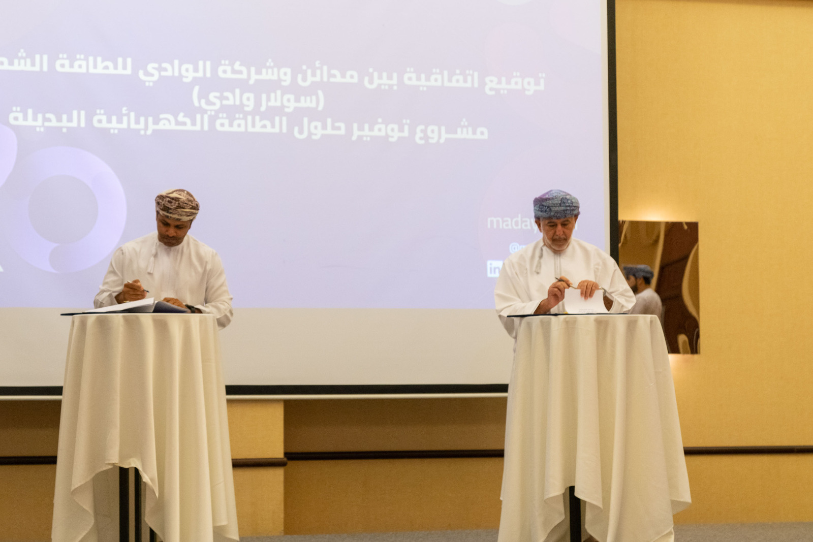 توقيع عقد انتفاع بين مدائن وسولار وادي لإقامة مشروع محطة الطاقة الشمسية بـصحار الصناعية