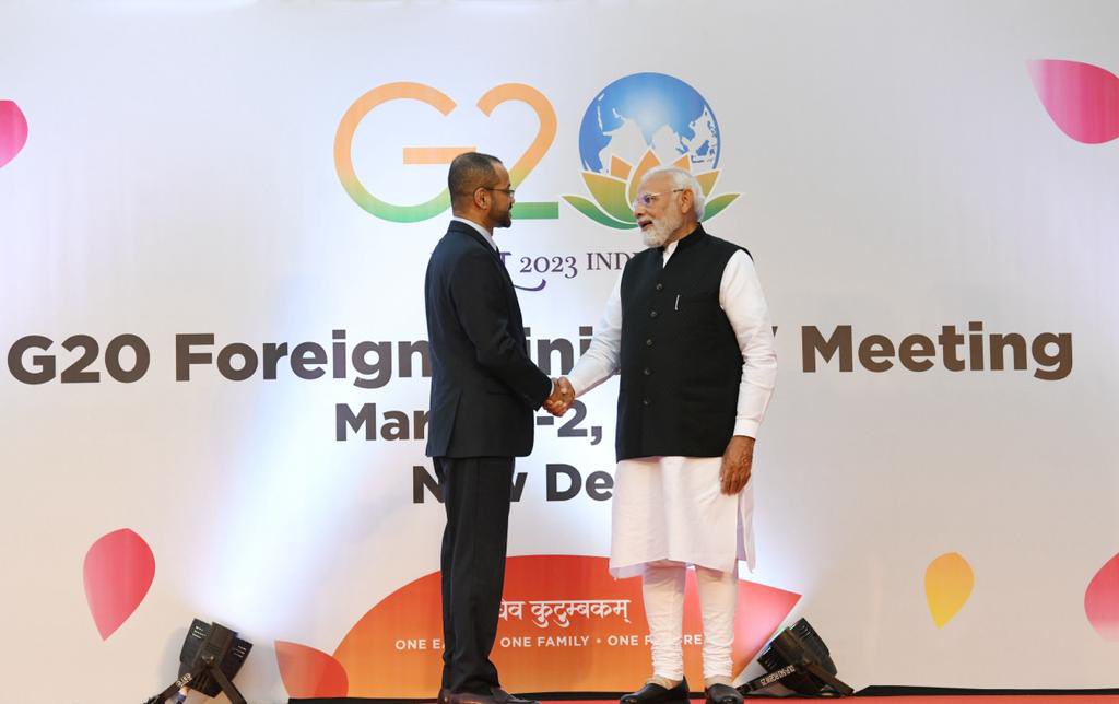 نقل معالي السيد وزير الخارجية تحيات وتهاني جلالة السلطان المعظم /حفظه الله ورعاه/ لدولة رئيس الوزراء الهندي لرئاسة واستضافة بلاده اجتماعات مجموعة العشرين، وذلك في العاصمة الهندية نيودلهي. لدى استقبال دولته وزراء الخارجية المشاركين في الاجتماع التابع للمجموعة وذلك في العاصمة الهندية نيودلهي.
