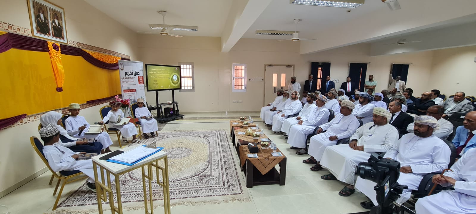 احتفلت المديرية العامة للتربية والتعليم بمحافظة الوسطى بتكريم ستة عشر مكرم من الطلبة والمشرفين وأولياء امورهم المتأهلين على مستوى المحافظة في مسابقة القرآن الكريم للعام 2022-2023م بمحوريها حفظ القرآن الكريم وإتقان التلاوة والصوت الحسن وذلك خلال الحفل الذي أقيم بمدرسة الجوبة للتعليم الأساسي برعاية الفاضل ماجد السناوي المدير العام وحضور عدد من مديري الدوائر ومديري المدارس والطلبة المكرمين وأولياء امورهم.