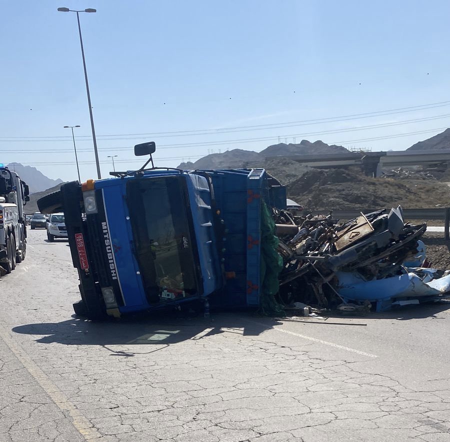 تدهور شاحنة قبل جسر الرسيل باتجاه مسقط