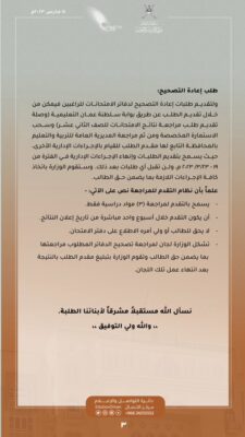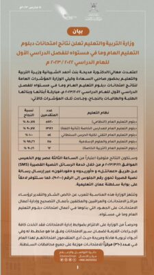وزارة التربية والتعليم تعتمد نتائج امتحانات دبلوم التعليم العام وما في مستواه للفصل الدراسي الأول