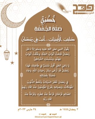 خطبة الجمعة بعنوان “يا صاحب الأمنيات .. أنت في رمضان”