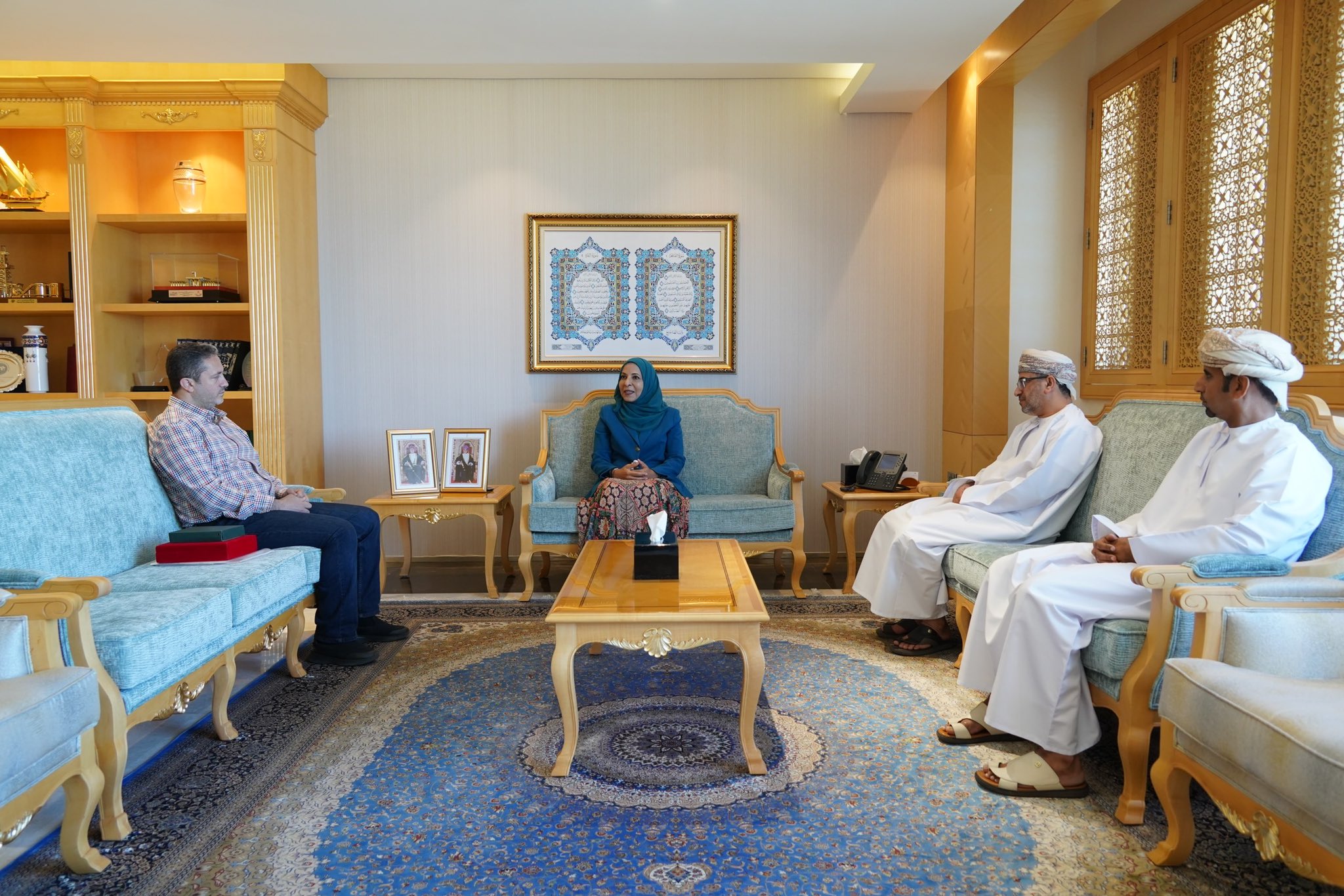 استقبلت معالي الدكتورة مديحة بنت أحمد الشيبانية وزيرةالتربية والتعليم، يوم (الخميس) بمكتبها في ديوان عامالوزارة، الدكتور مازن أحمد قبيسي رئيس الاتحاد العربي للتربية البدنية والرياضة المدرسية بحضور سعادة الأستاذ الدكتور عبدالله بن خميس أمبوسعيدي وكيل وزارة التربيةوالتعليم رئيس الاتحاد العماني للرياضة المدرسية وهشام بن سالم العدواني نائب رئيس الاتحاد العماني للرياضة المدرسية.