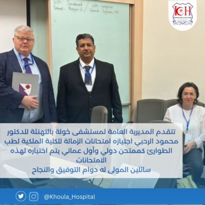 اجتاز الدكتور محمود الرحبي امتحانات الزمالة للكلية الملكية لطب الطوارئ كممتحن دولي وأول عماني يتم اختياره لهذه الامتحان.