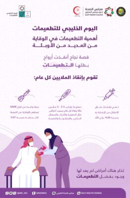 يصادف اليوم هو اليوم الخليجي للتطعيمات يأتي ذلك لتعريف بأهمية التطعيمات في الوقاية من العديد من الأوبئة وقصة نجاح أنقذت أرواح بطلها التطعيمات التي تقوم بإنقاذ الملايين كل عام.