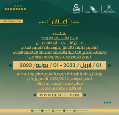اعلن مركز القبول الموحد عن فتح باب التسجيل لتقديم طلبات الالتحاق بمؤسسات التعليم العالي والبعثات والمنح الخارجية والداخلية للمرحلة الجامعية الأولى للعام الأكاديمي 2024/2023، كما هو موضح أدناه: