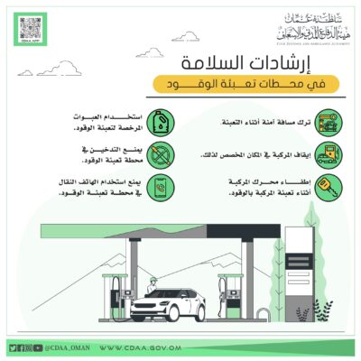 اعلنت هيئة الدفاع المدني والاسعاف عبر حسابها الرسمي على موقع التواصل الاجتماعي تويتر عن إرشادات السلامة في محطات تعبئة الوقود كما في المنشور التالي :