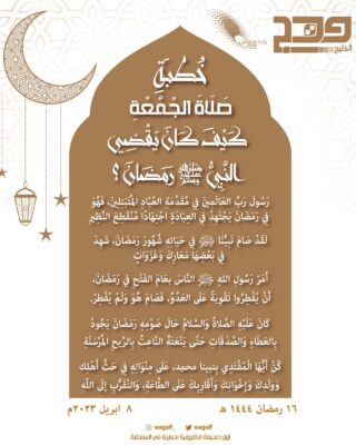 خطبة صلاة الجمعة بعنوان: “كَيْفَ كَانَ يَقْضِي النَّبِيُّ ﷺ رَمَضَانَ ؟”
