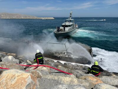 استجابت فرق الإطفاء والإنقاذ بإدارة الدفاع المدني والإسعاف بمحافظة مسندم لحادث حريق شب في أحد القوارب الراسية في ميناء خصب وامتداده إلى قاربين آخرين، حيث نتج عن الحادث وفاة شخص وإصابة ٩ بإصابات تراوحت بين المتوسطة والخفيفة.