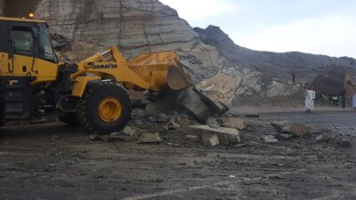 بلدية مسقط تنظف موقع الإنهيار الجبلي