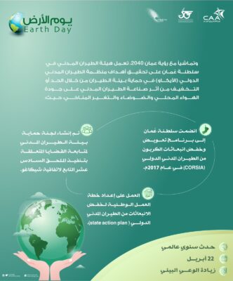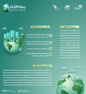 تشارك هيئة الطيران المدني العالم الاحتفاء بيوم الأرض، وتؤكد حرصها على زيادة الوعي المجتمعي بالقضايا البيئية، وإظهار الدعم لحماية الأرض.