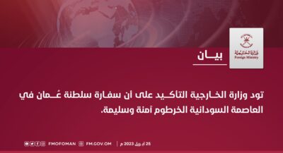 الخارجية: سفارة سلطنة عُمان في العاصمة السودانية آمنة وسليمة