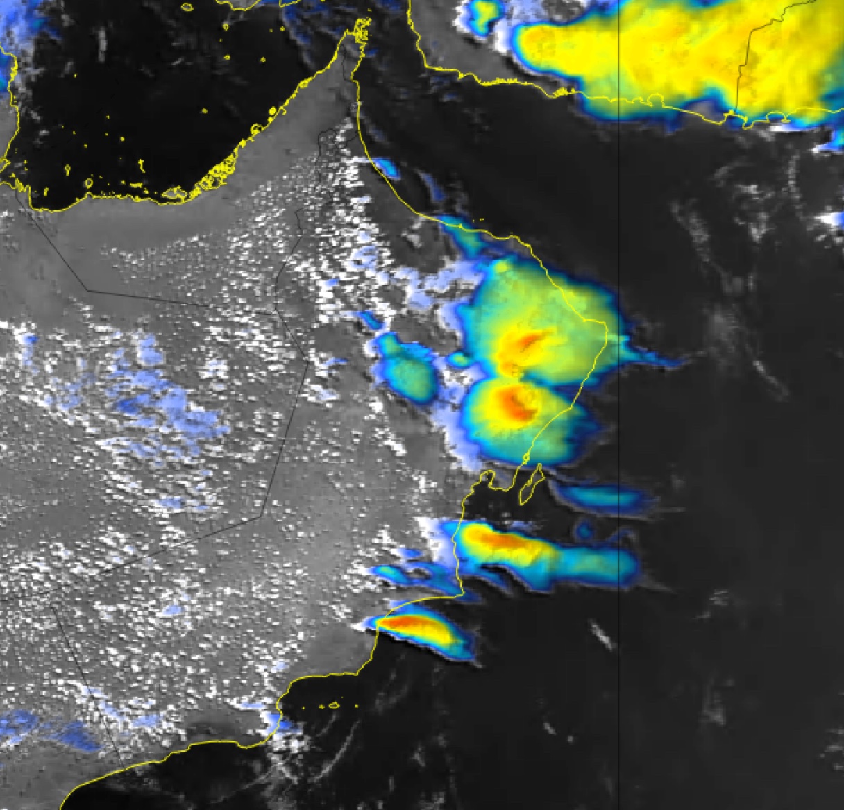 أعلنت هيئة الأرصاد الجوية عبر صفحتها الرسمية على موقع التواصل الاجتماعي تويتر عن تكون سحب ركامية رعدية تأثر على محافظتي شمال وجنوب الشرقية أجزاء من الداخلية والوسطى مع هطول أمطار متفاوتة الغزارة مصحوبة برياح هابطة نشطة وتساقط لحبات البرد أحيانًا.