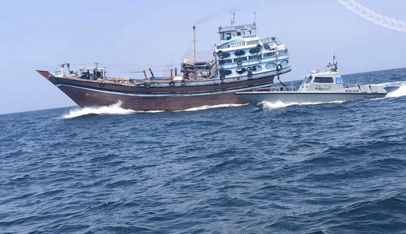ضبطت شرطة خفر السواحل بقيادة شرطة محافظة مسندم 16 آسيويًا في عرض البحر أثناء قيامهم بنقل مواش مهربة من دولة آسيوية عبر عدة قوارب إلى مركبين خشبيين بهدف تهريبها إلى دولة أخرى، وضبط بحوزتهم أكثر من 830 رأسًا من المواشي، وتم تسليم المتهمين إلى إدارة جمارك مسندم لاستكمال الإجراءات القانونية بحقهم.