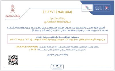 ” العمل ” تعلن عن مجموعة من الوظائف لدى ديوان البلاط السلطاني